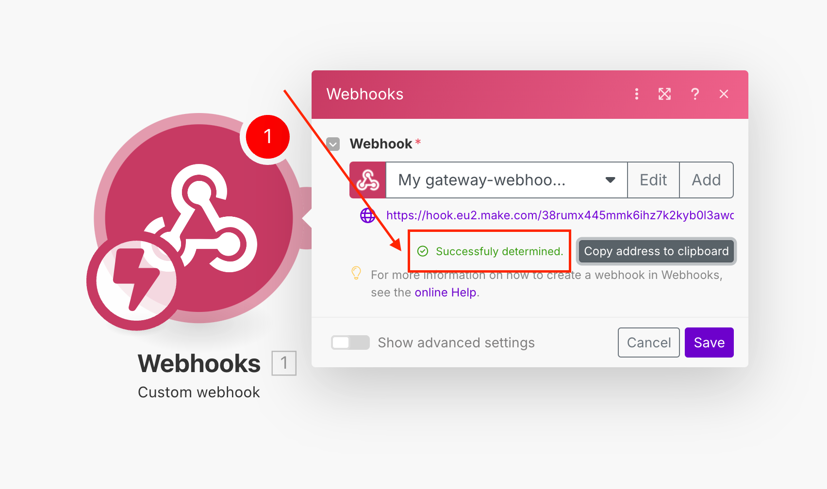 Once it's done go back to Make.com, we should see a green message "Successfully determined".